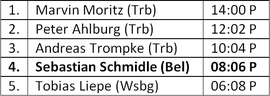 Die fünf besten Spieler haben sich für die nächste Runde qualifiziert: