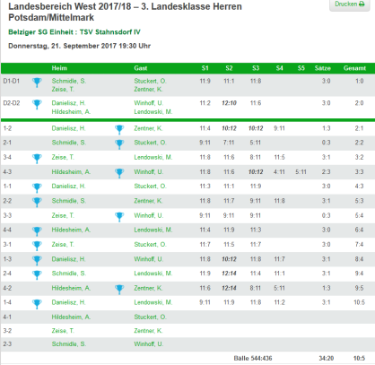 Stahnsdorf trat nicht in Bestbesetzung an. In den Doppeln konnten sich daher die beiden besser eingespielten Paarungen aus Belzig klar mit 3:0 durchsetzen.