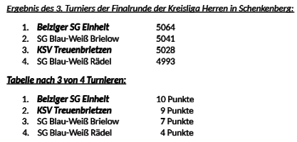 Tagessieg erkämpfen. Da der KSV Treuenbrietzen nur den 3. Platz belegte, rutschten sie nunmehr auf Rang 2 in der Tabelle ab.