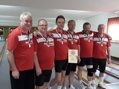 Am 24.03.2018 wurde auf der Kegelbahnanlage des KSV Treuenbrietzen der finale Wettkampf in der Aufstiegsrunde der Kreisliga der Herren ausgetragen. Neben den Gastgebern gingen hier die Mannschaften der SG Blau-Weiß Rädel, der Belziger SG Einheit und der SG Blau-Weiß Brielow an den Start. Schließlich ging es hier um die begehrte Trophäe des Kreismeistertitels, für welche nach dem bisherigen Tabellenstand beide Mannschaften der Flämingstädte Bad Belzig und Treuenbrietzen favorisiert waren. So gingen die Belziger mit einem Punkt Vorsprung vor den Treuenbrietzenern in das Rennen. Doch sollte dieser Vorsprung nicht darüber hinwegtäuschen, dass die Kreisstädter den Gesamtsieg nur erzielen können würden, ließen sie die heimische Mannschaft hinter sich. Doch bereits nach dem ersten Durchgang zeigten die Gastgeber, dass sie Willens waren, den so wichtigen Heimvorteil zu nutzen. Mit guten 860 Holz ließ der Treuenbrietzener Anschieber Matthias Grywnow die Konkurrenten hinter sich, welche sich auf der nicht einfach bespielbaren Kegelbahnanlage recht schwer taten. Da der Belziger Manfred Hoffmann hier nicht über 798 Holz hinauskam, mussten die Kreisstädter zunächst mit dem 4. Platz hinter der SG Blau-Weiß Rädel Vorlieb nehmen. Auch der ihm folgende Werner Latendorf konnte sich mit 822 Holz nicht an die Gegner herankegeln. Der KSV Treuenbrietzen hingegen baute seinen Vorsprung weiter aus. Mit 854 Holz musste sich Holger Grabow lediglich dem für Rädel spielenden Wolfgang Liehre geschlagen geben (858 Holz). Als Detlef Schwarz den dritten Durchgang mit guten 865 Holz für sich entschied, flammte für die Belziger zwar die Hoffnung auf, das Schlusslicht noch abgegeben zu können, aber ein Sieg schien schon nicht mehr möglich, zeigte doch der KSV-Spieler Michael Schulze mit 859 Holz eine solide Leistung und hielt die Konkurrenten weiter auf Abstand. Mit dem 4. Durchgang wurden die Weichen für den KSV Treuenbrietzen schließlich auf Sieg und Kreismeistertitel gestellt. Markus Grywnow zeigte als bester seines Teams mit 885 Holz eine gewohnt starke Leistung und konnte damit das beste Gesamtergebnis für sich verzeichnen. Der Rädeler Spieler patzte hier, was dem Belziger Frank Mattke mit 850 erkegelten Holz zu Gute kam und wodurch die SG Einheit Belzig endlich die Schlusslaterne abgeben konnte. Leider war es den Kreisstädtern nicht mehr vergönnt, auch noch die Brielower Mannschaft anzugreifen, da in den letzten beiden Durchgängen, insbesondere von den Brielowern, nochmals stark aufgespielt wurde. Wenngleich Detlef Freitag mit 866 Holz eine sehr gute Leistung zeigte und als Bester seines Teams hervorging, entschied der Brielower Torsten Richter den Durchgang mit starken 880 Holz für sich. Der für die Gastgeber spielenden Christian Sporn sicherte mit 861 Holz weiterhin die Führung für seine Mannschaft. Im letzten Durchgang ließ der KSV-Spieler Olf Kutzner mit guten 867 Holz nichts mehr anbrennen und machte den Sack endgültig zu. Sven Sonntag, der im letzten Durchgang für die Belziger startete, war es mit 847 Holz leider nicht mehr vergönnt, den Brielowern Platz 2 zu nehmen.